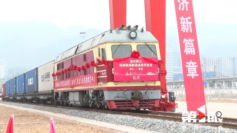 2月29日上午,西部陆海新通道黔江班列成功首发,6个集装箱装载着黔江出产的玻璃瓶、罐头、轮胎等商品,发往广西钦州港,再通过海运出口至东南亚。班列的开行,标志着黔江450万吨铁路货场集装箱功能区正式投用,结束了黔江区没有国际贸易班列的历史。